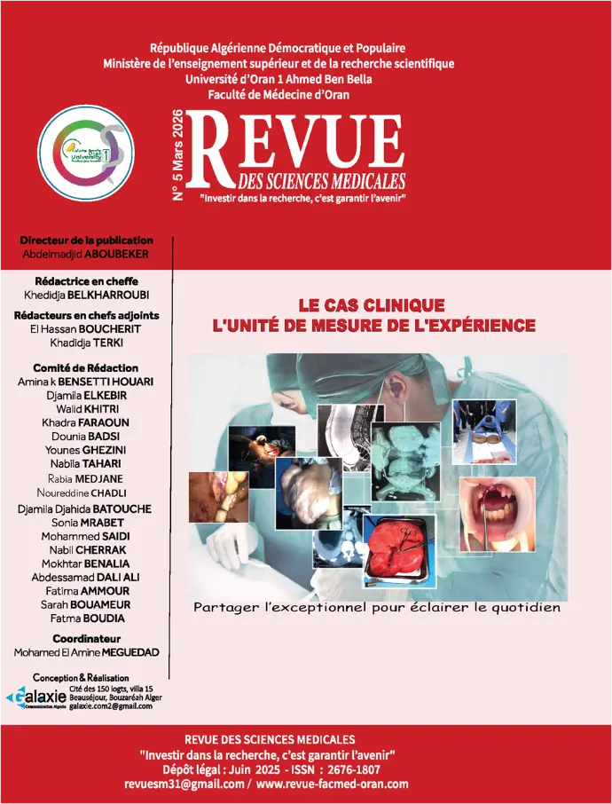 Afin de répondre aux nouvelles exigences médicales et éthiques, la Revue des Sciences Médicales d'Oran (RSMO) offrira un excellent moyen d'information et d'actualisation des connaissances et des compétences.